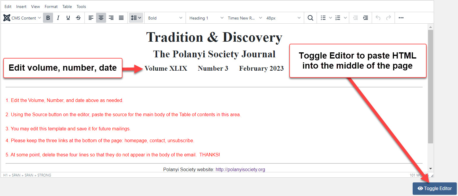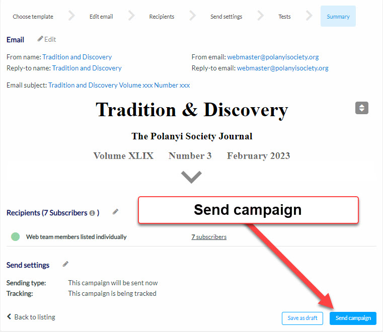 Please do not edit past email campaigns. That destroys the evidence of what worked in the past. Instead, send yourself a test email from a successful campaign and use that for guidance in creating a new campaign from scratch.