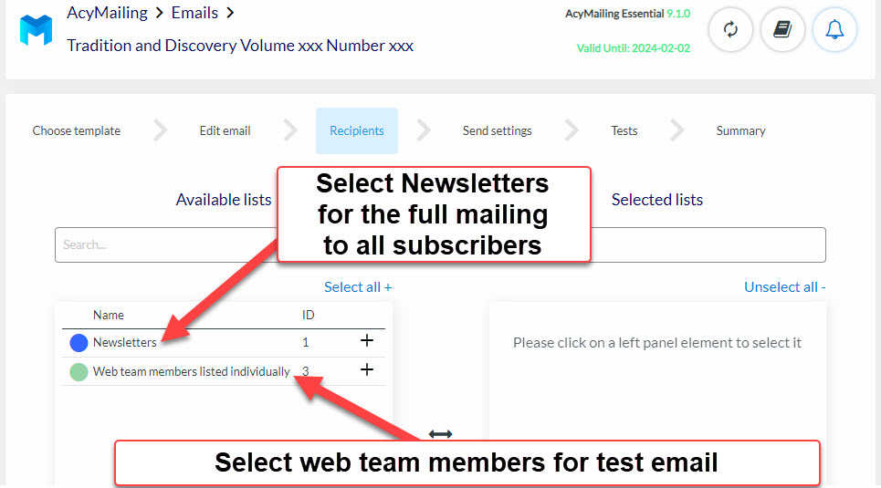 Do a test with the Webteam members first. When it succeeds, then replace that list with the Newsletters list.