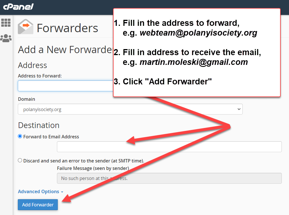It is at this stage that you could create a new from address as well as supplying one or more recipient addresses to be associated with it.